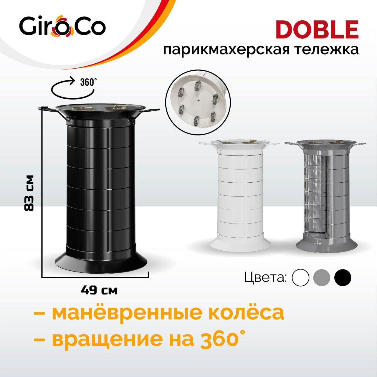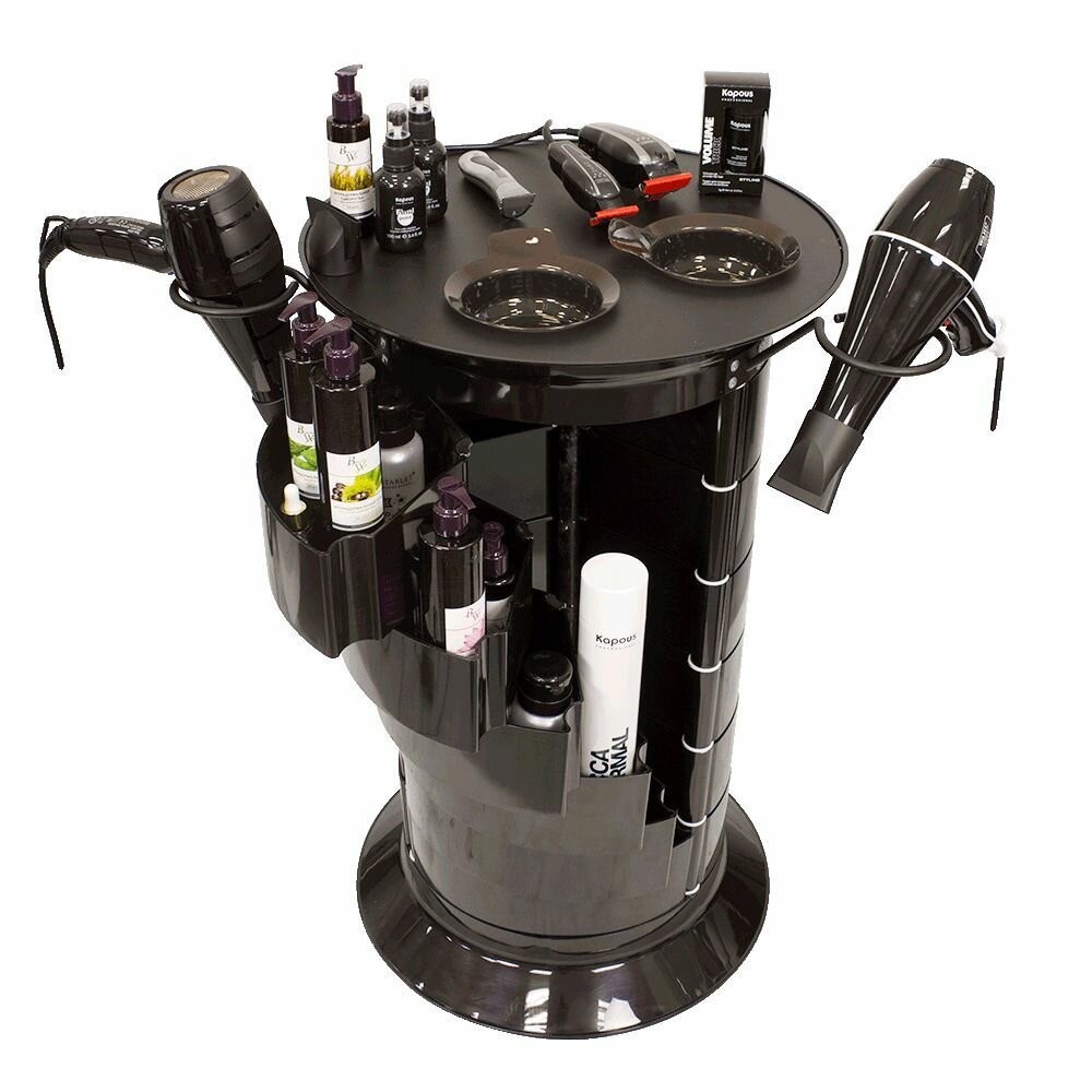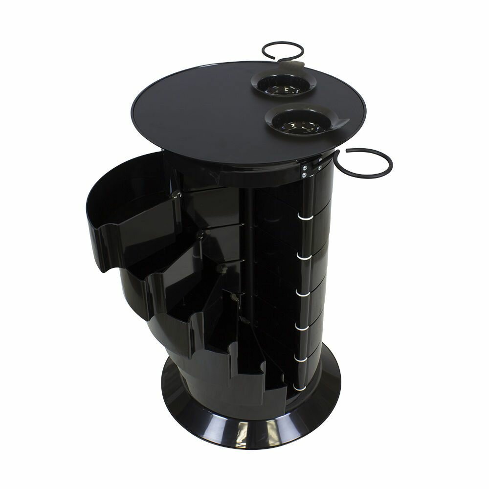 СохранитьПарикмахерская тележка с 18 ящиками GiroCo Doble 49х49х83 см черная, круглая, пластиковая, выкатная на колесиках для салона красоты, парикмахера интересное: