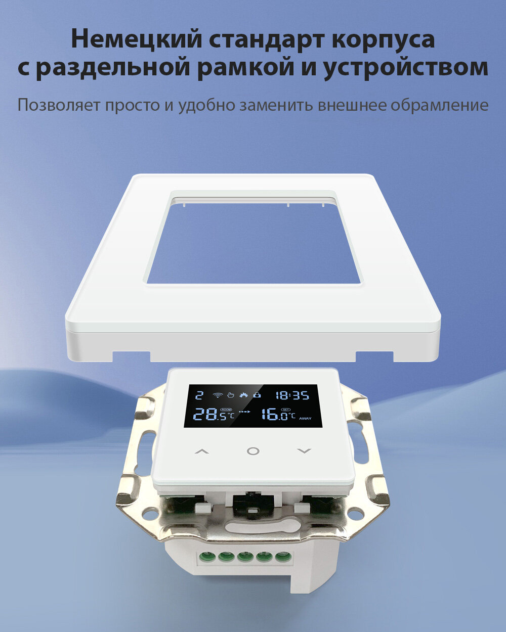 | Подробная комплектация | умный термостат, инструкция на английском языке, крепежные винты |