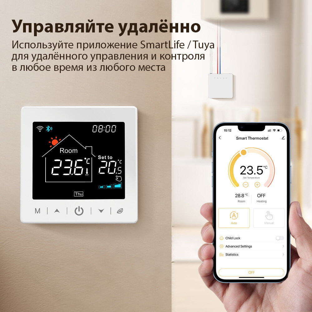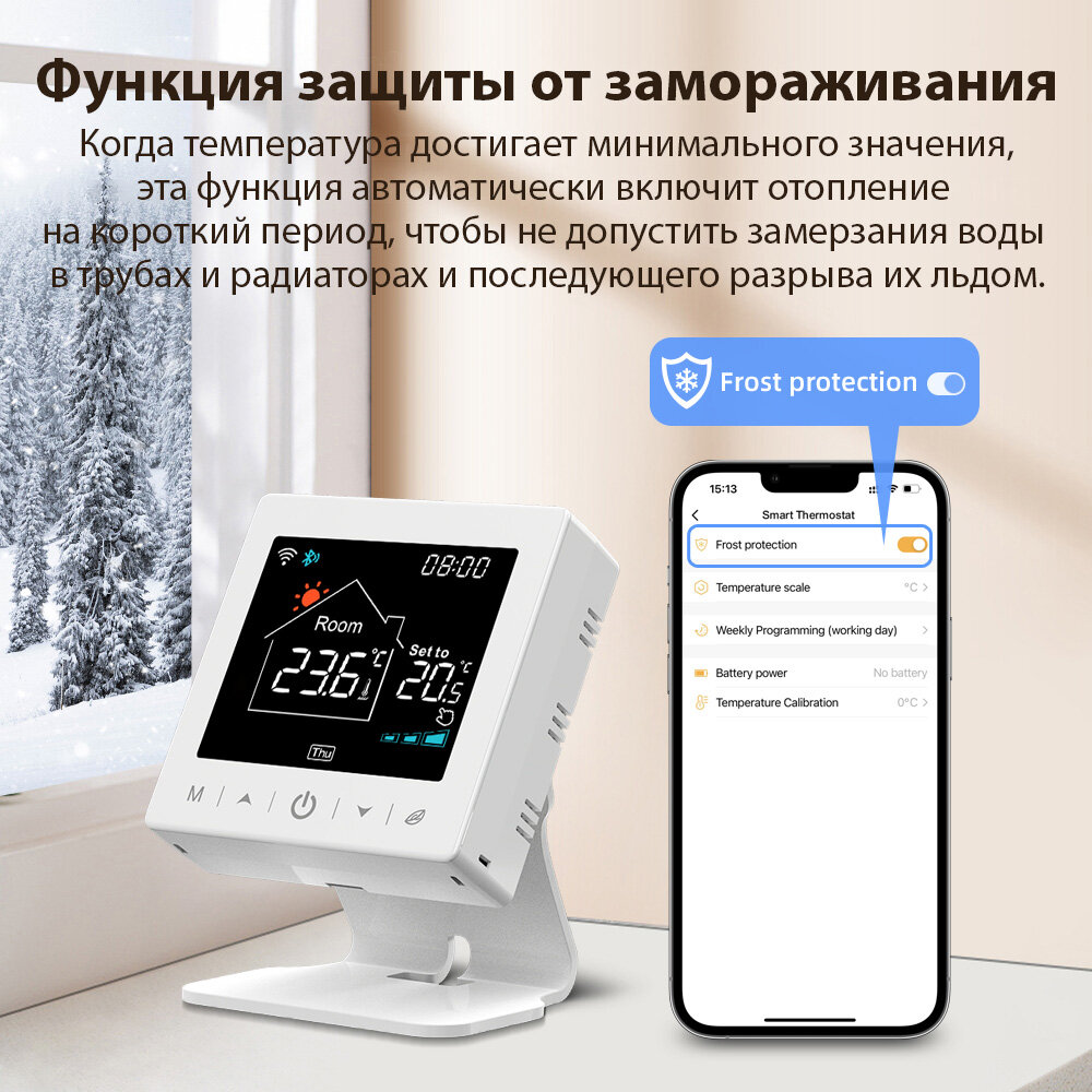 Умный термостат WT398 c WiFi и радиоканалом RF433Mhz для водяного, газового котла интересное: