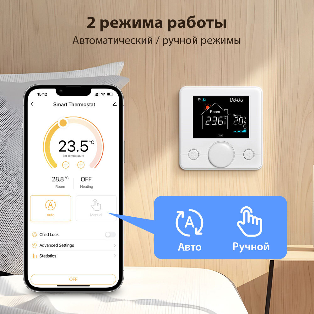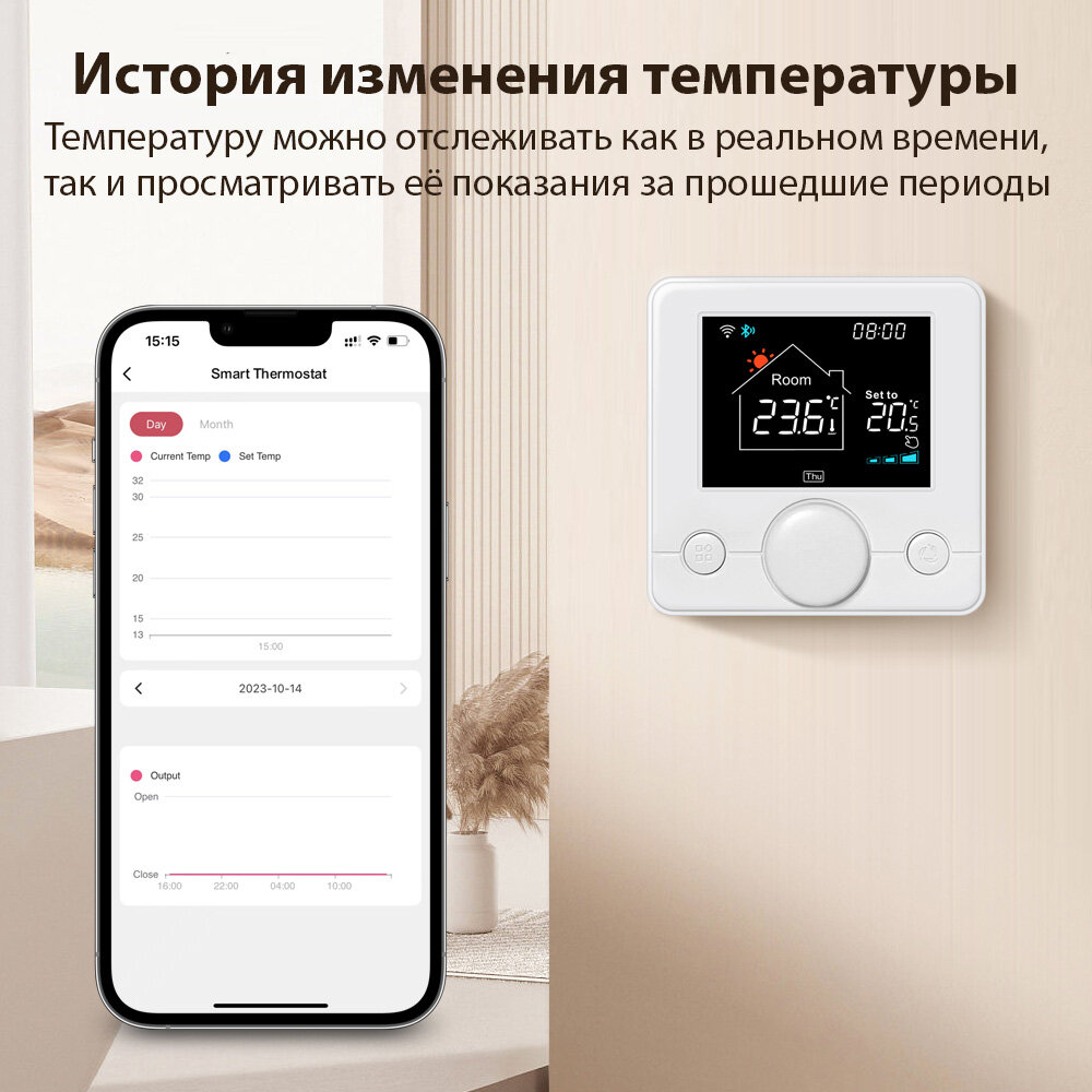 Умный термостат WT298 c WiFi и радиоканалом RF433Mhz для водяного, газового котла интересное: