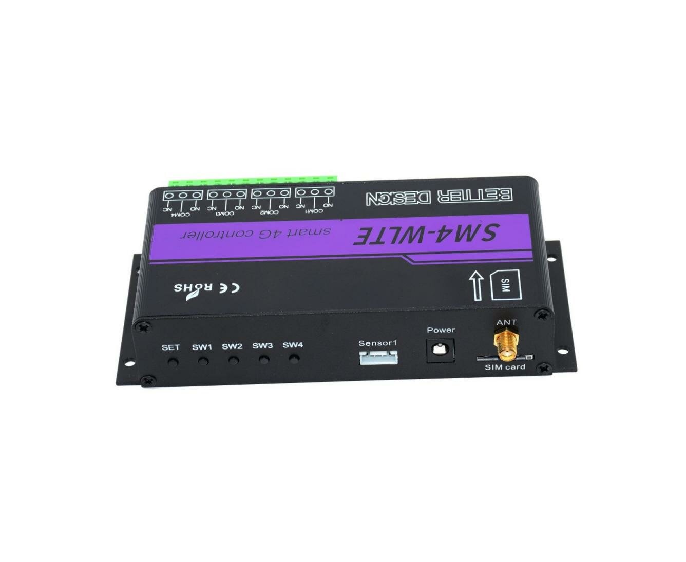 Купить 4G GSM реле управления на 4 канала с внешним датчиком температуры Страж Мод:SM41-EU (Управлятор) (Q385084G). SMS пульт дистанционного управления для в