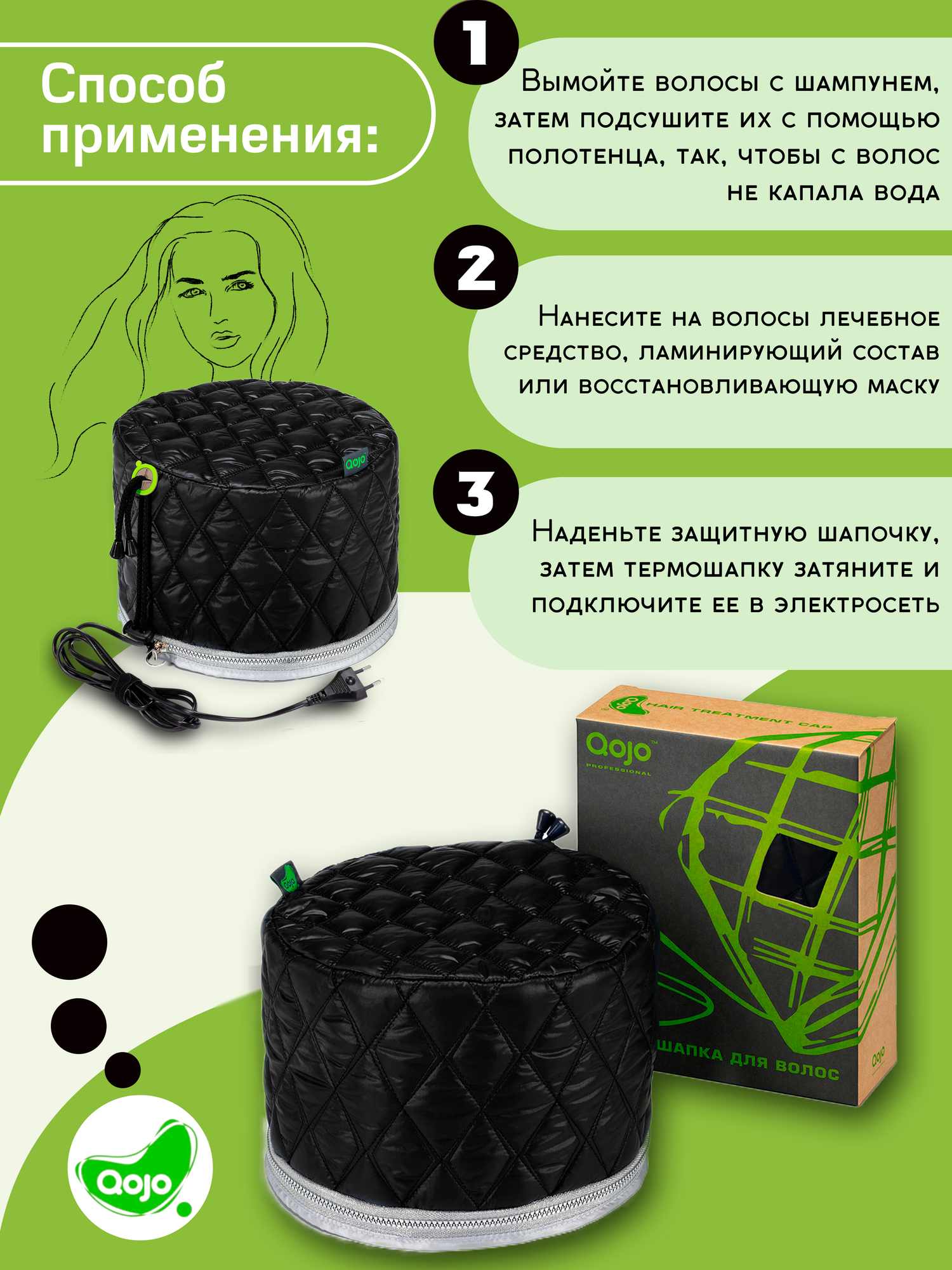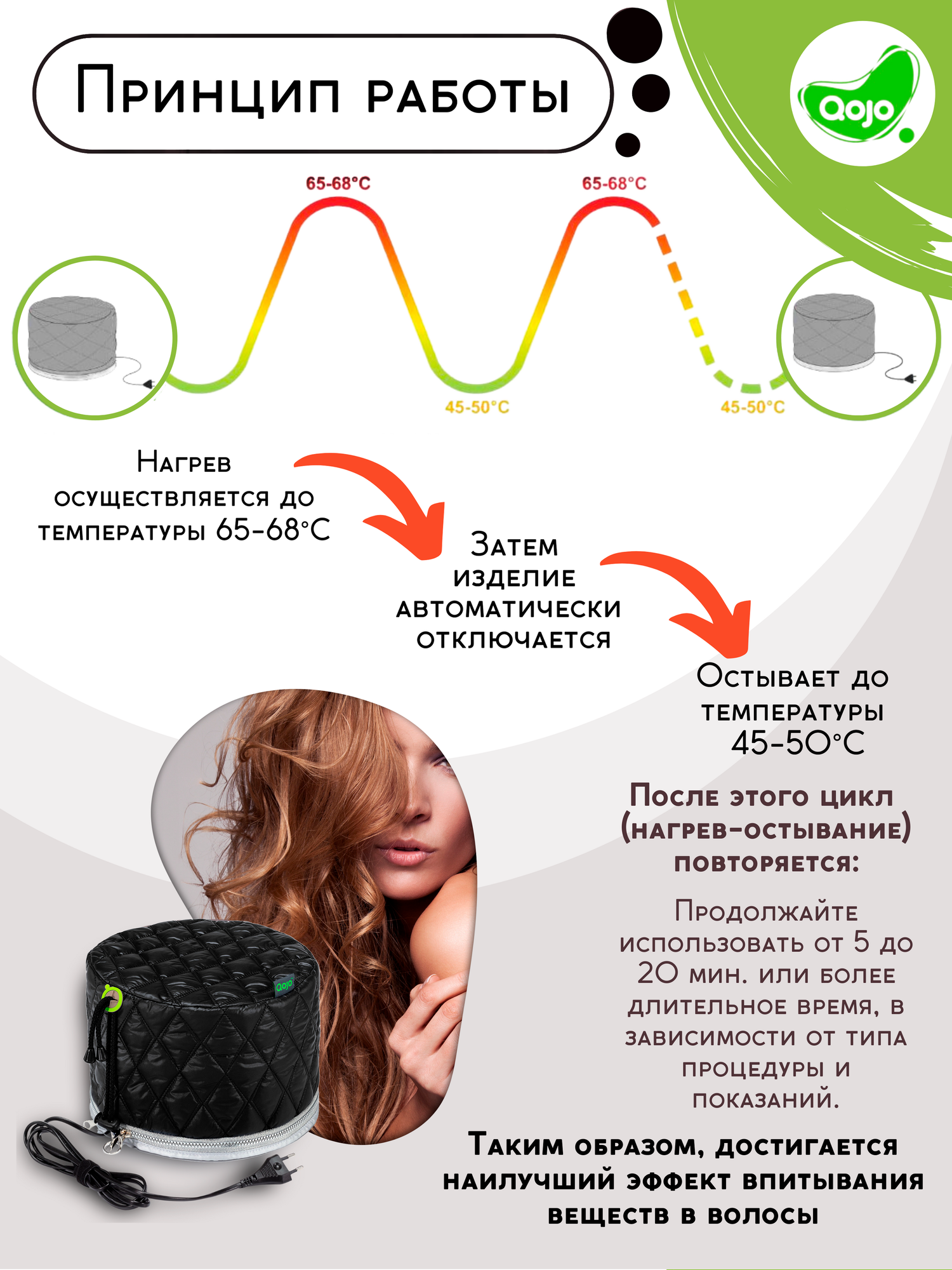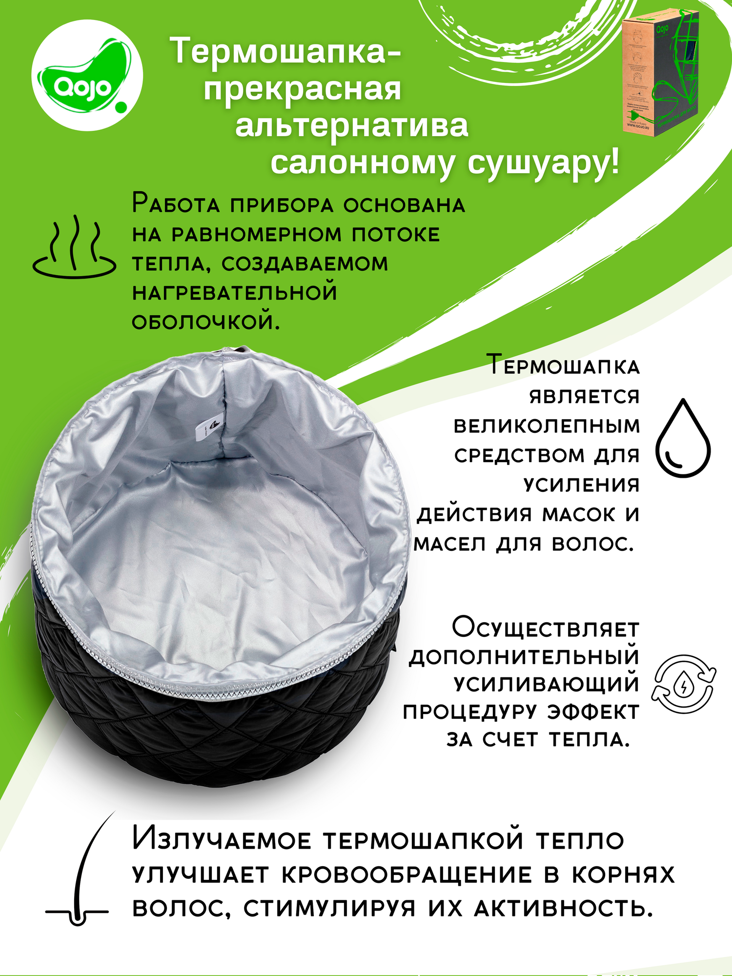 Термошапка для волос электрическая Qojo Sirius (Black) 25x16 см интересное: