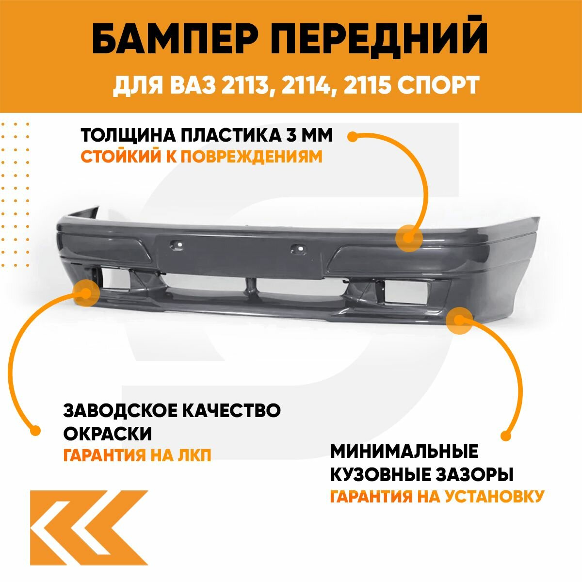 Купить Бампер передний в цвет кузова ВАЗ 2113, 2114, 2115 спорт 630 - Кварц - Серый
