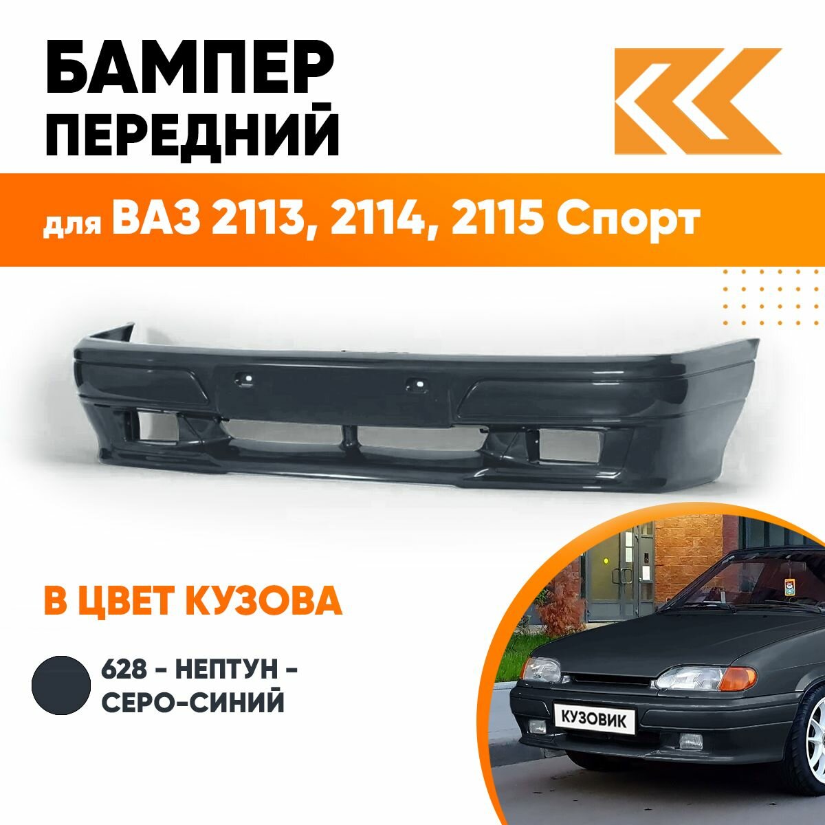 СохранитьБампер передний в цвет кузова ВАЗ 2113, 2114, 2115 спорт 628 - Нептун - Серо-синий интересное: