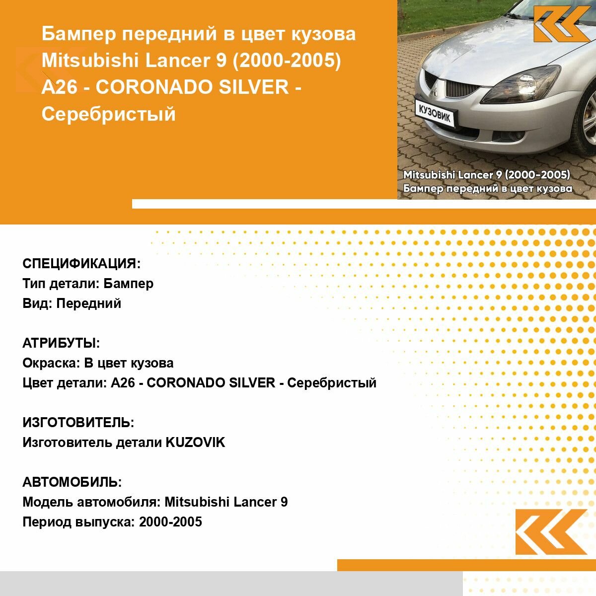 Купить Бампер передний в цвет кузова Mitsubishi Lancer 9 Митсубиси Лансер (2003-2005) A26 - CORONADO SILVER - Серебристый
