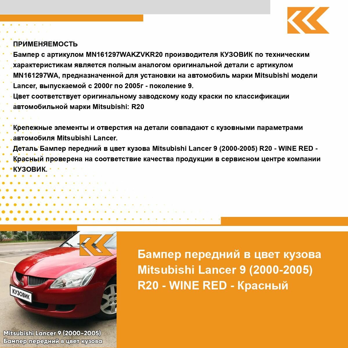 СохранитьБампер передний в цвет кузова Mitsubishi Lancer 9 Митсубиси Лансер (2003-2005) R20 - WINE RED - Красный интересное:
