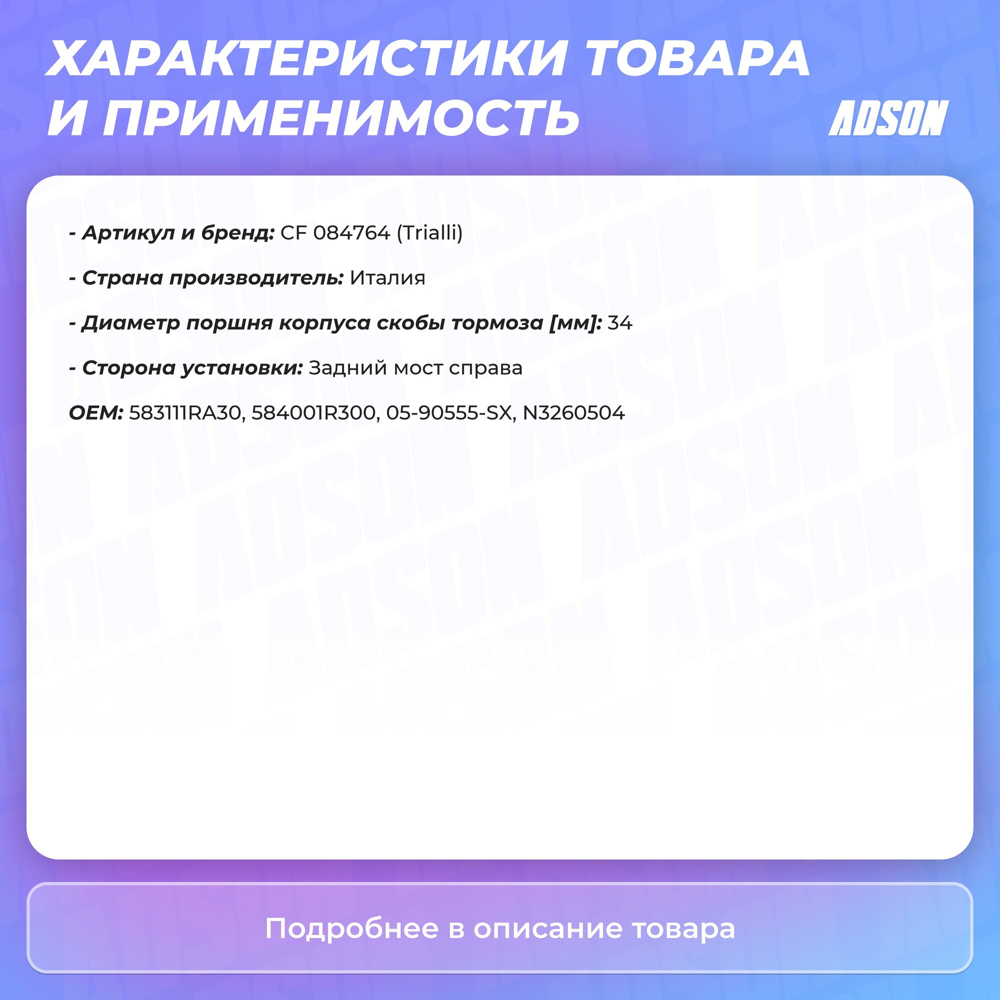 Суппорт Торм. Зад. Прав. Для А/М Hyundai Solaris (10-) D=34Mm (Cf 084764) Trialli арт. CF084764