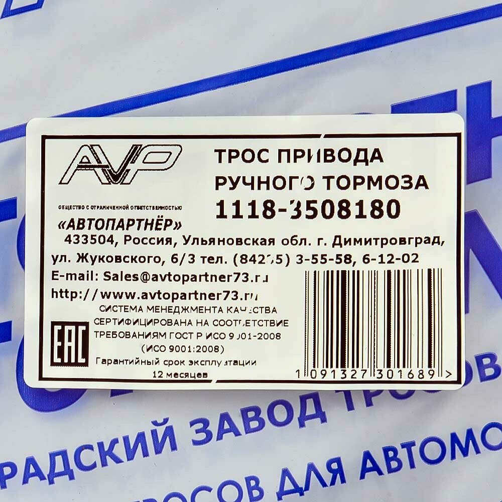 Тросы привода стояночного тормоза автопартнер 1118 2 шт AVP RN1118180F интересное: