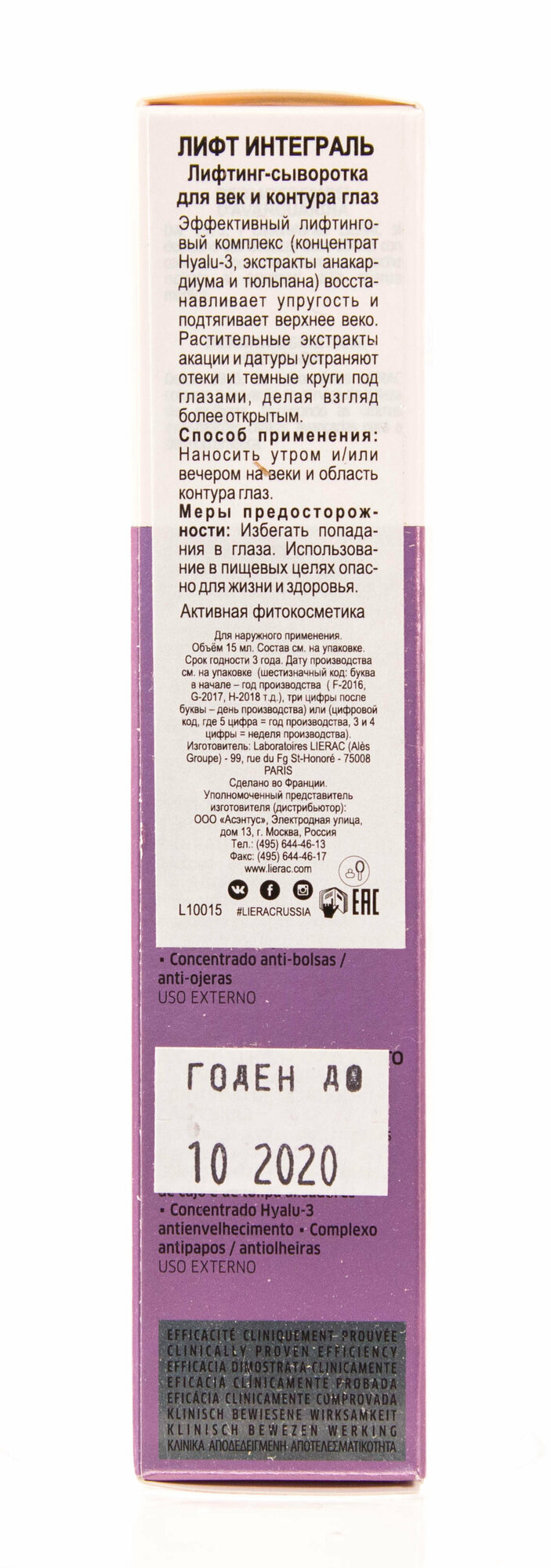 LIERAC LIFT INTEGRAL лифтинг-сыворотка для ВЕК И контура глаз 15МЛ интересное: