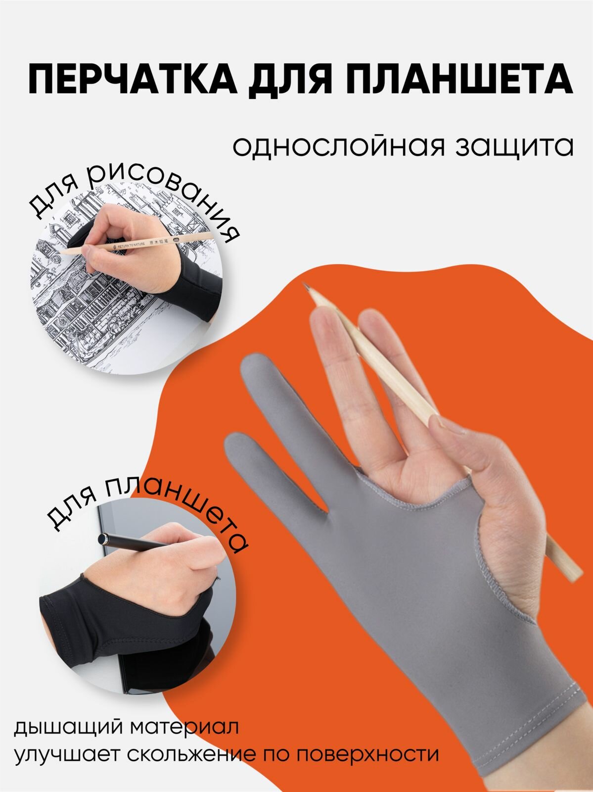 Купить Перчатка антисенсорная для рисования на планшете и бумаге серая М