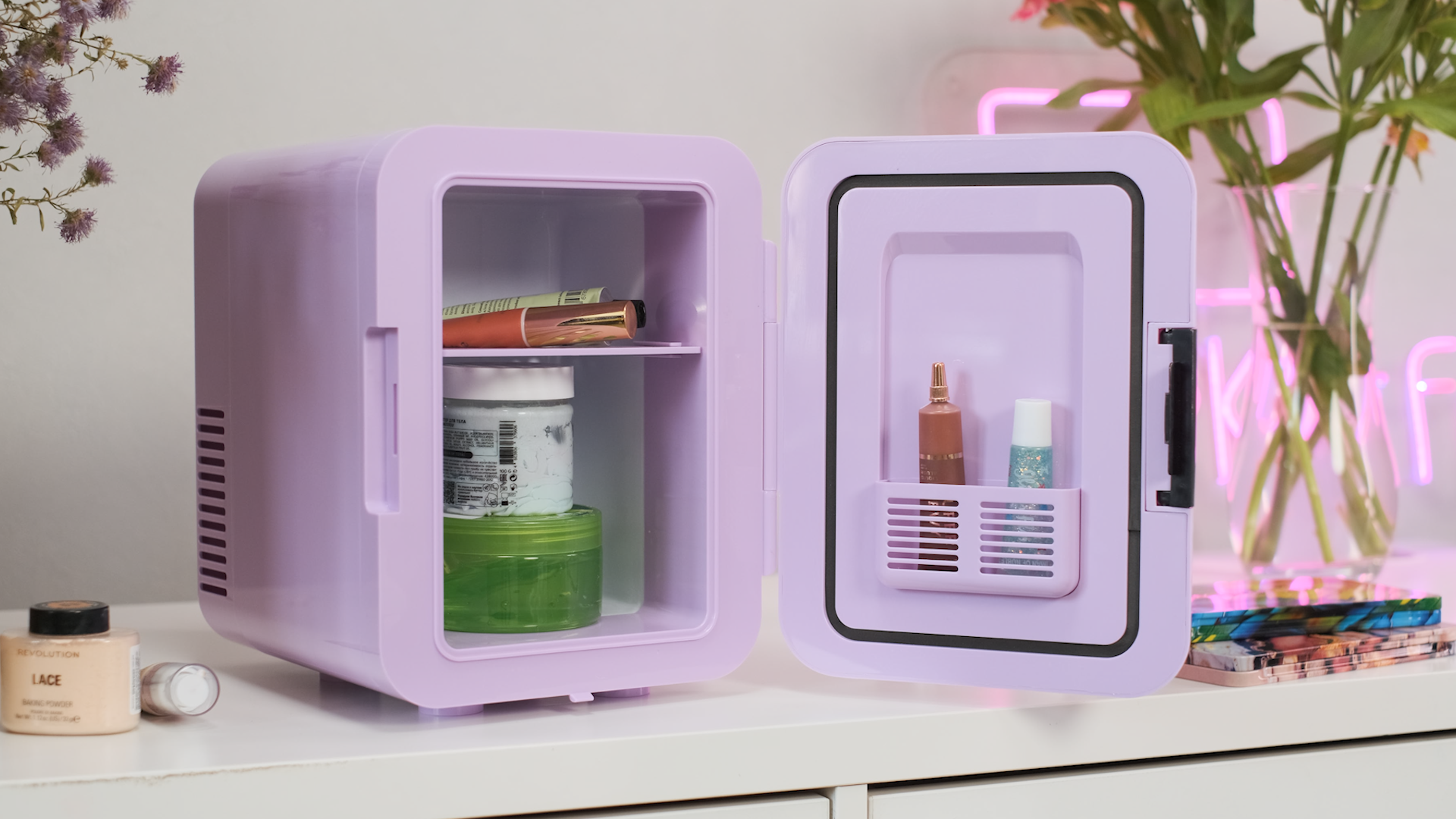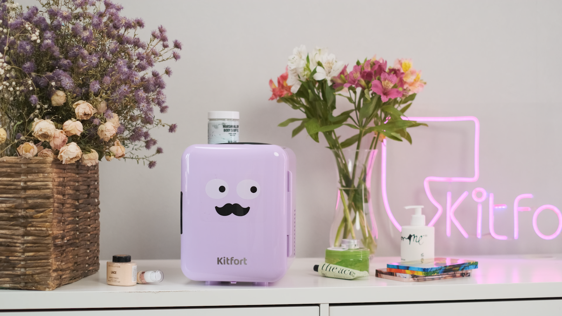 Холодильник для косметики Kitfort КТ-3159-3 лавандовый интересное: