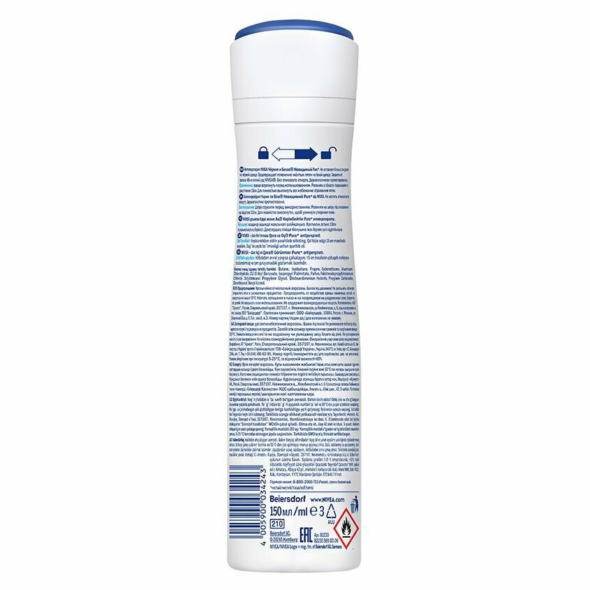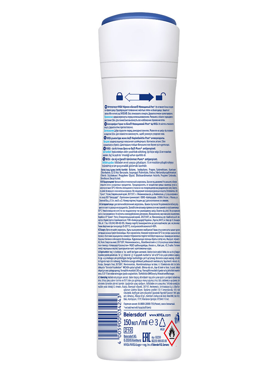 Купить Дезодорант-антиперспирант спрей NIVEA "Черное и Белое" Невидимый Pure, 150 мл.