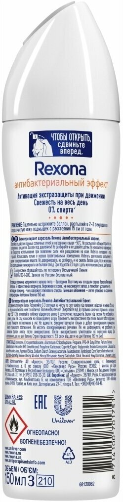 Антиперспирант-аэрозоль REXONA Антибактериальный эффект, 150 мл интересное: