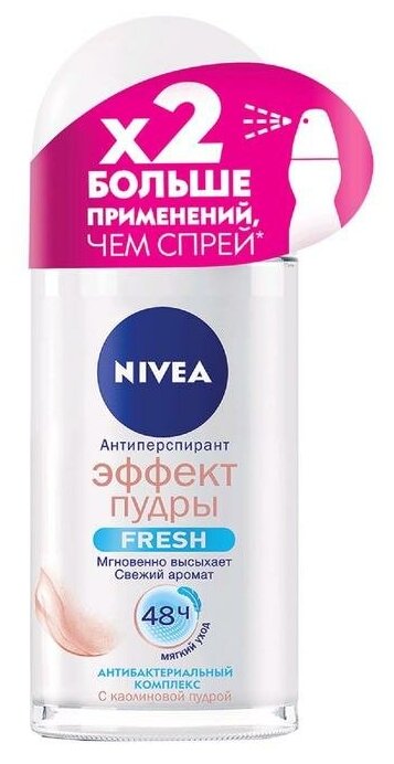 Дезодорант-антиперспирант шариковый Nivea "Эффект Пудры" Fresh антибактериальный комплекс, 50 мл. интересное: