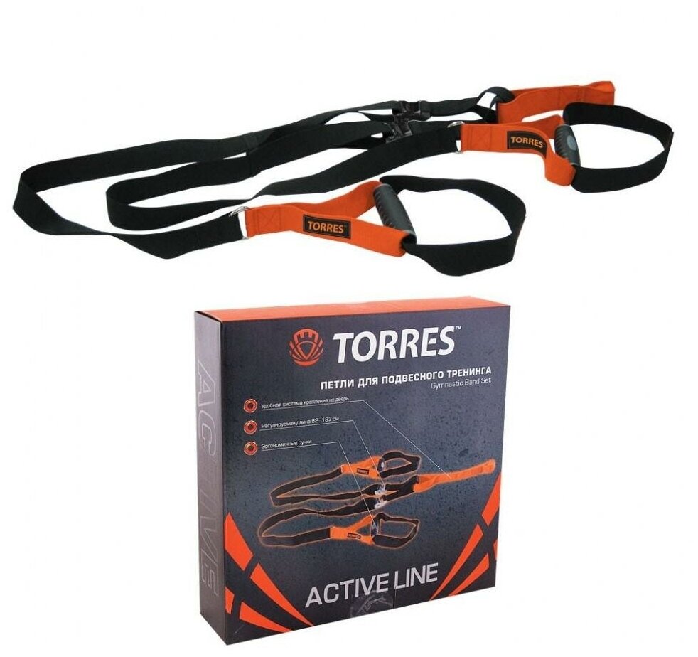 TORRES Петли для подвесного тренинга TORRES, эргономические нескользящие ручки, цвет черный/оранжевый