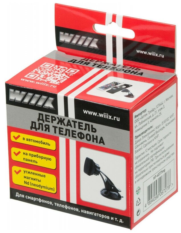 Держатель Wiiix HT-45T7mg для смартфонов и навигаторов, магнитный, черный
