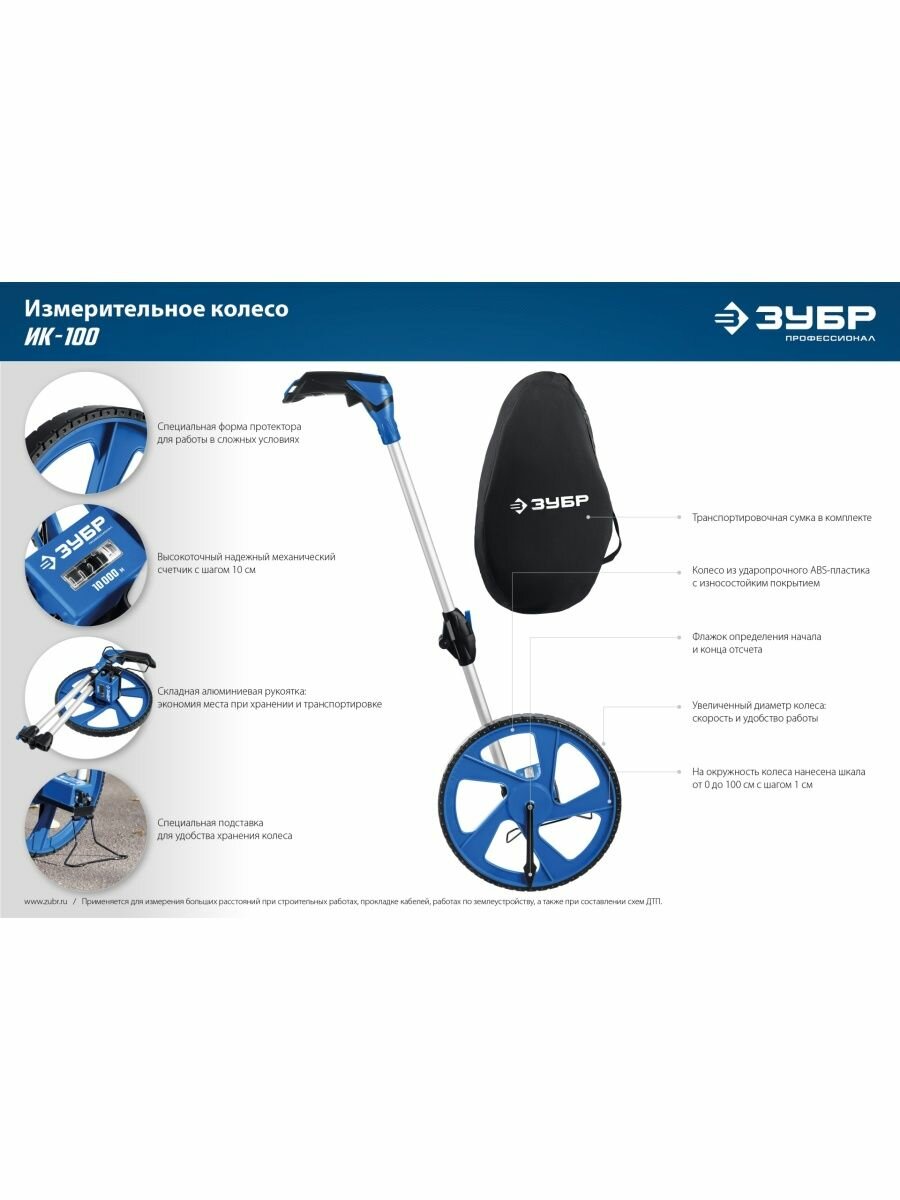 ЗУБР 0.1 - 9999 м, измерительное колесо, (курвиметр) со складной алюминиевой рукояткой, Профессионал (34880) интересное: