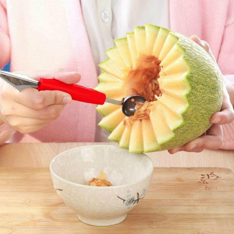 Купить Нож и ложка нуазетка для карвинга и фигурной нарезки фруктов и овощей, бордовый