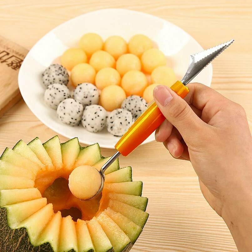Нож и ложка нуазетка для карвинга и фигурной нарезки фруктов и овощей, оранжевый интересное: