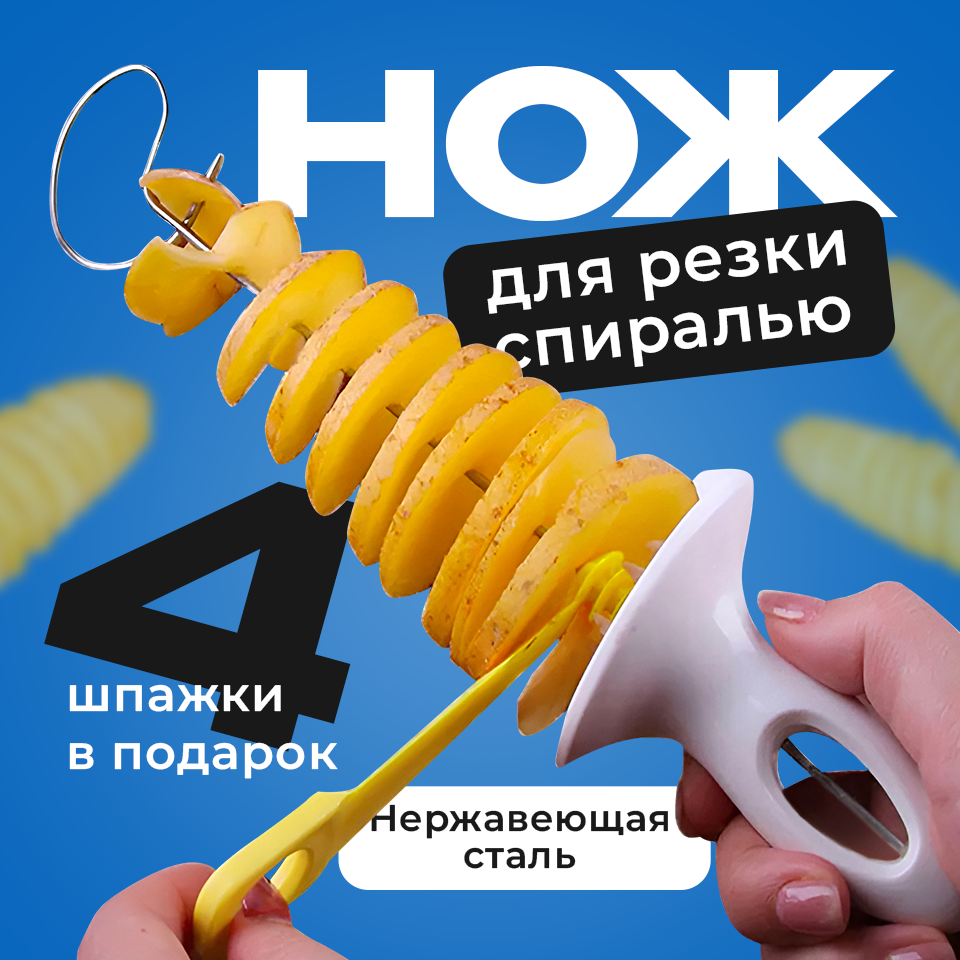 Фигурный нож для резки картофеля спиралью, Shiny Kitchen, Спиральный нож для фигурной нарезки овощей и фруктов интересное:
