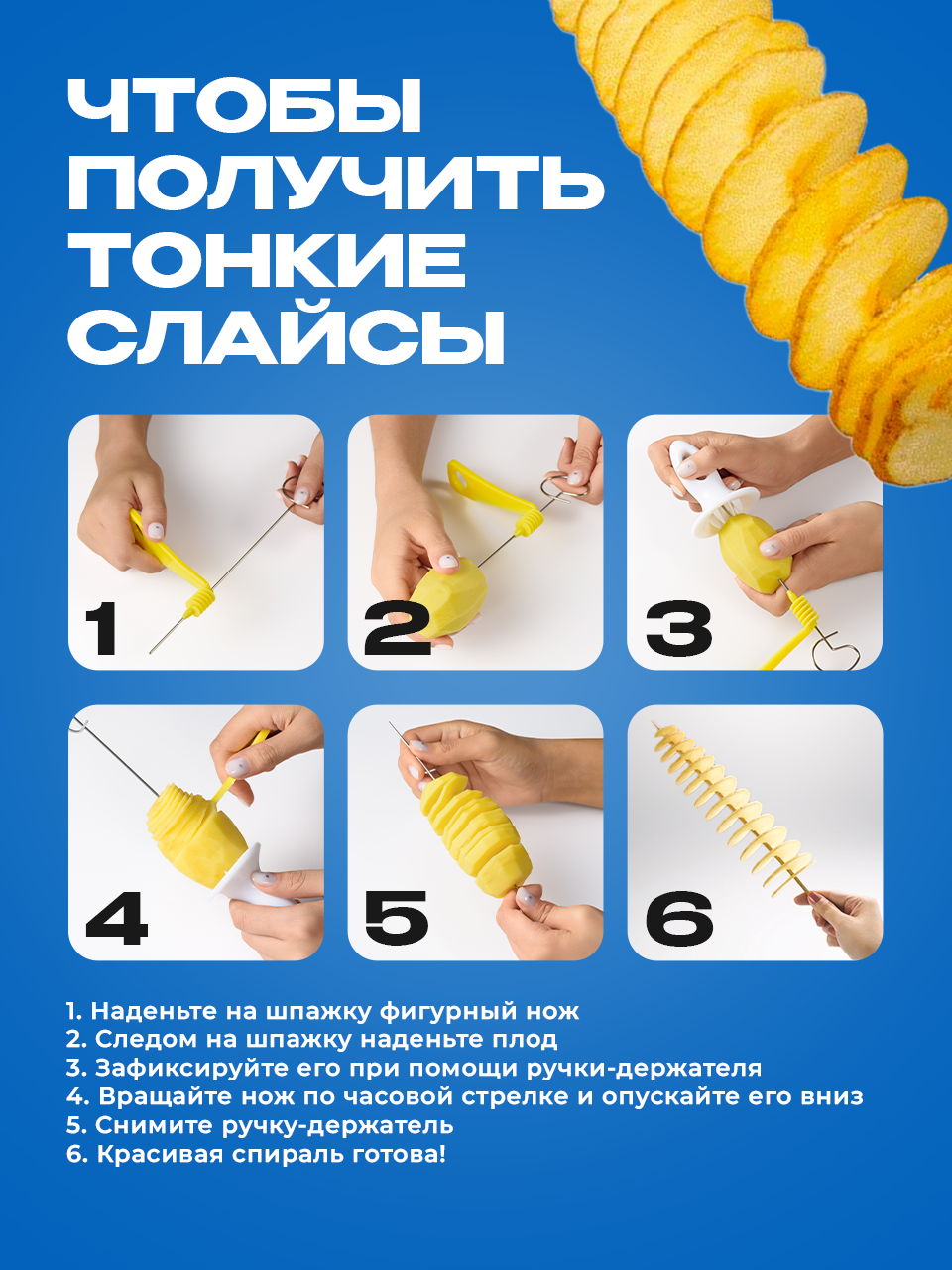 Нож для фигурной нарезки картофеля спиралями