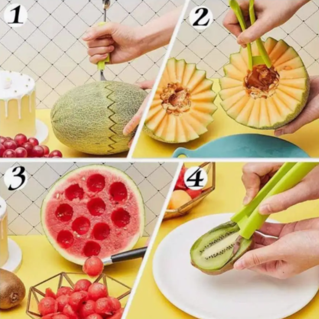 4 в 1 ножи для фигурной нарезки фруктов / Резак для фруктов и овощей / Набор для карвинга / Инструменты для нарезки овощей и фруктов / голубой интересное: