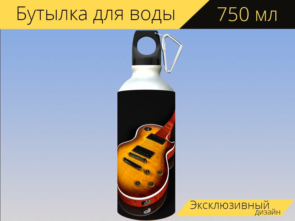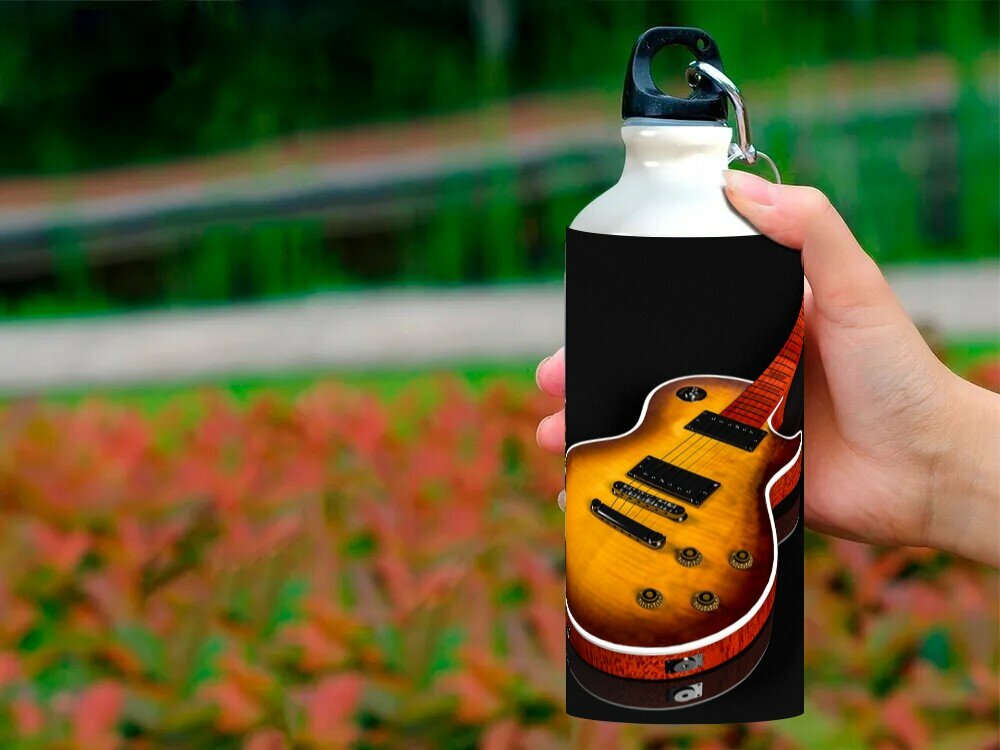 Купить Бутылка фляга для воды "Гитара, гибсон, музыка" 750 мл. с карабином и принтом