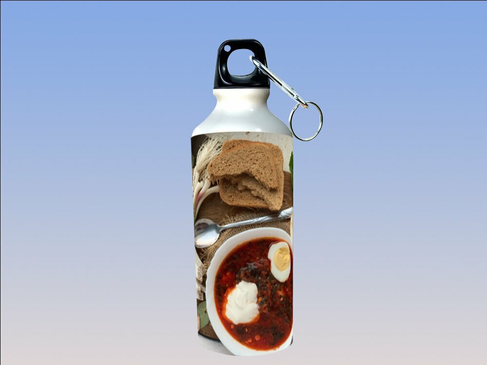 Купить Бутылка фляга для воды "Борщ, суп, еда" 750 мл. с карабином и принтом