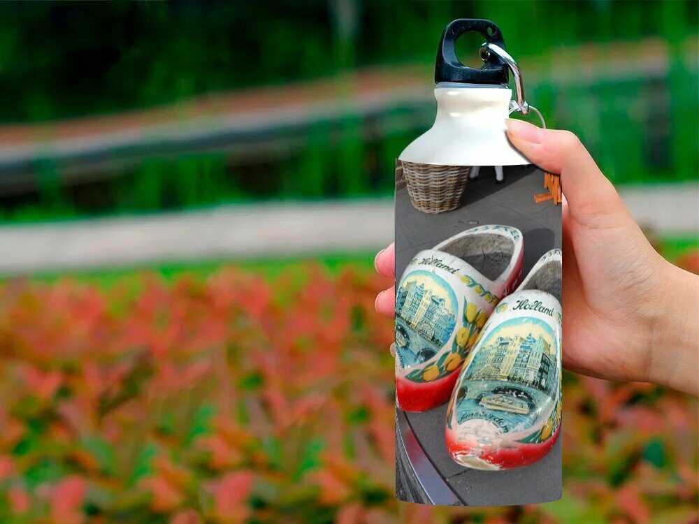 Купить Бутылка фляга для воды "Деревянные туфли, обувь, нидерланды" 750 мл. с карабином и принтом
