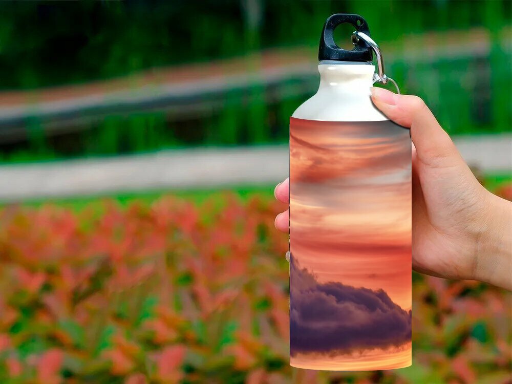 Купить Бутылка фляга для воды "Небо, облака, заход солнца" 750 мл. с карабином и принтом