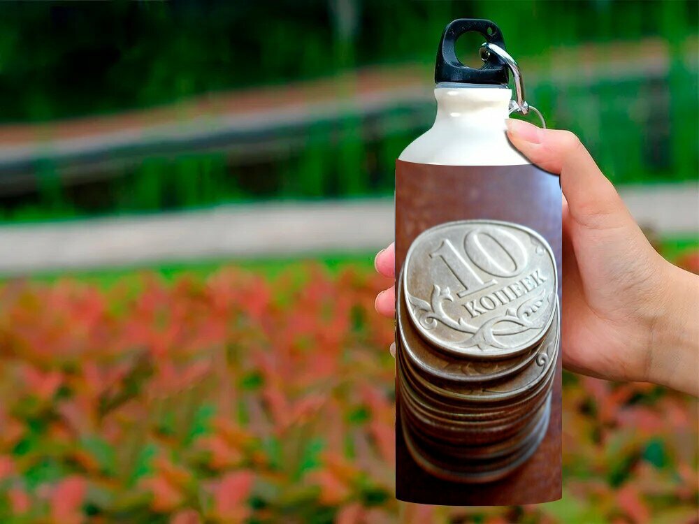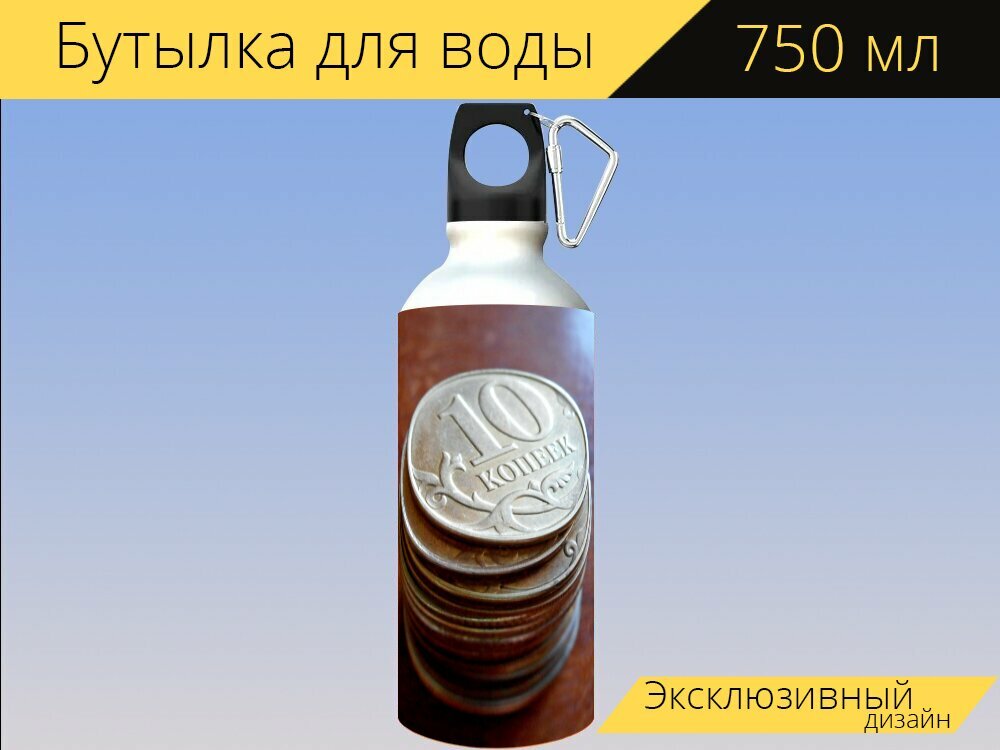 Бутылка фляга для воды "Монеты, копейка, валюта" 750 мл. с карабином и принтом интересное: