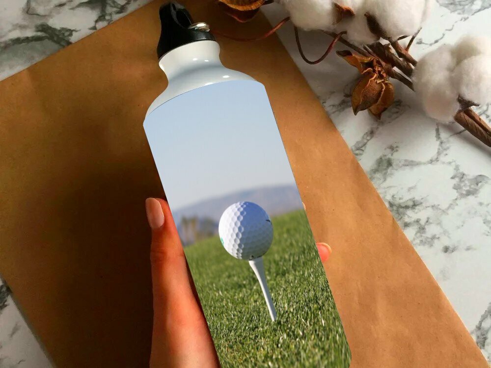 Купить Бутылка фляга для воды "Гольф, тройник, игра в гольф" 750 мл. с карабином и принтом