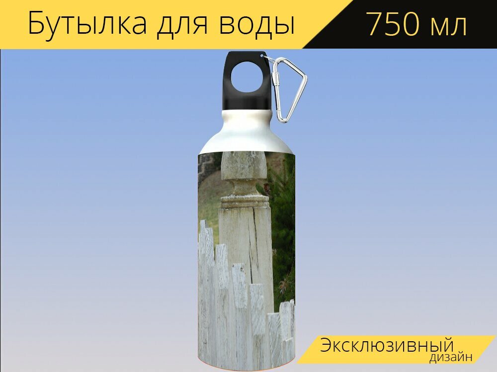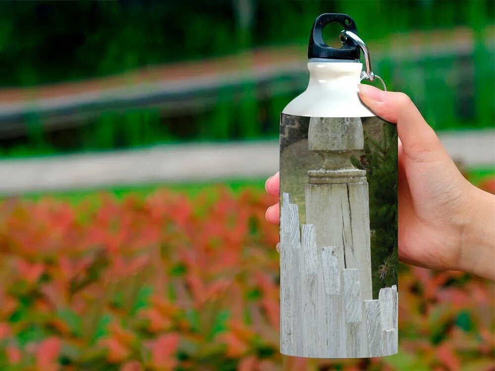 Купить Бутылка фляга для воды "Забор, изгородь, белый" 750 мл. с карабином и принтом
