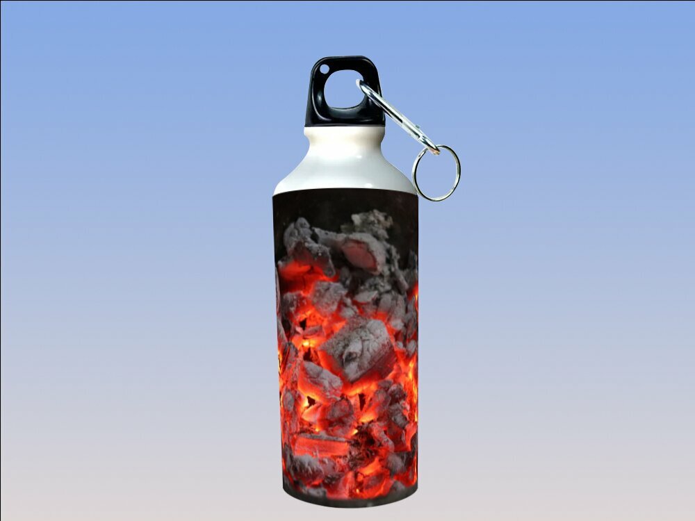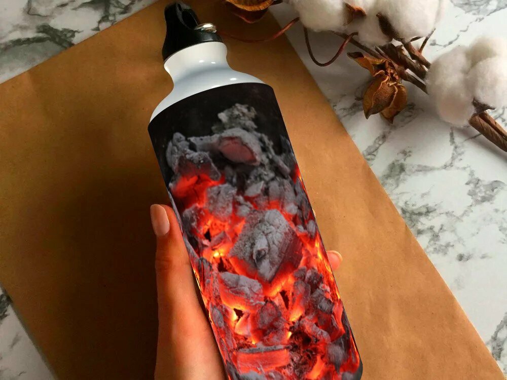 Купить Бутылка фляга для воды "Уголь, пожар, горящий" 750 мл. с карабином и принтом