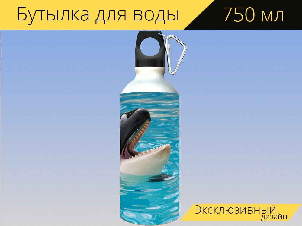 Бутылка фляга для воды "Лоро парк, косатка, рыбы" 750 мл. с карабином и принтом интересное: