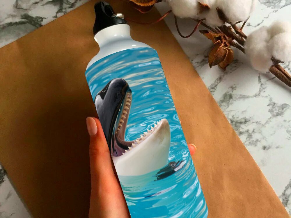 Купить Бутылка фляга для воды "Лоро парк, косатка, рыбы" 750 мл. с карабином и принтом