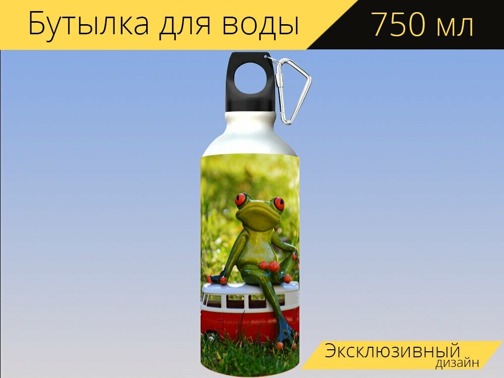 Бутылка фляга для воды "Лягушка, булли, volkswagen" 750 мл. с карабином и принтом интересное: