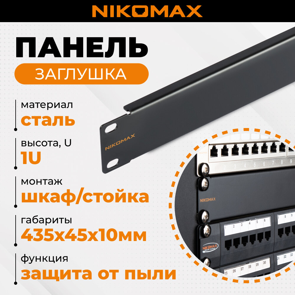 Панель-заглушка NIKOMAX 19", 1U, металлическая, черная интересное: