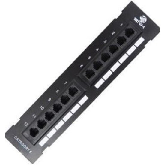Патч-панель Bnh , настенная, портов: 12 х RJ45, кат. 6, универсальная, неэкр., цвет: чёрный, (B105-12-6-UNB) интересное:
