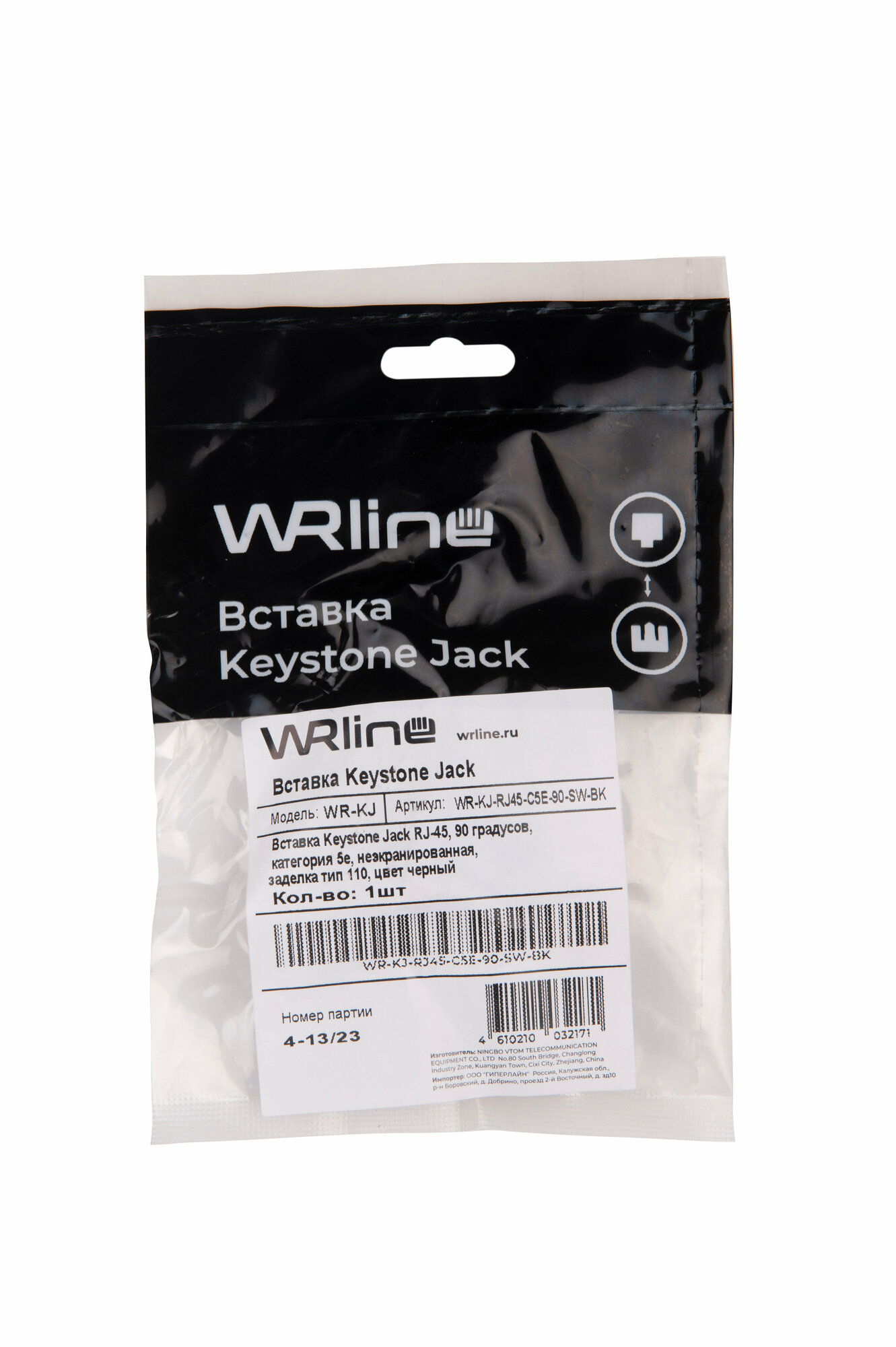 Купить Вставка Keystone Jack RJ-45, 90 градусов, категория 5e, неэкранированная, заделка тип 110, цвет черный