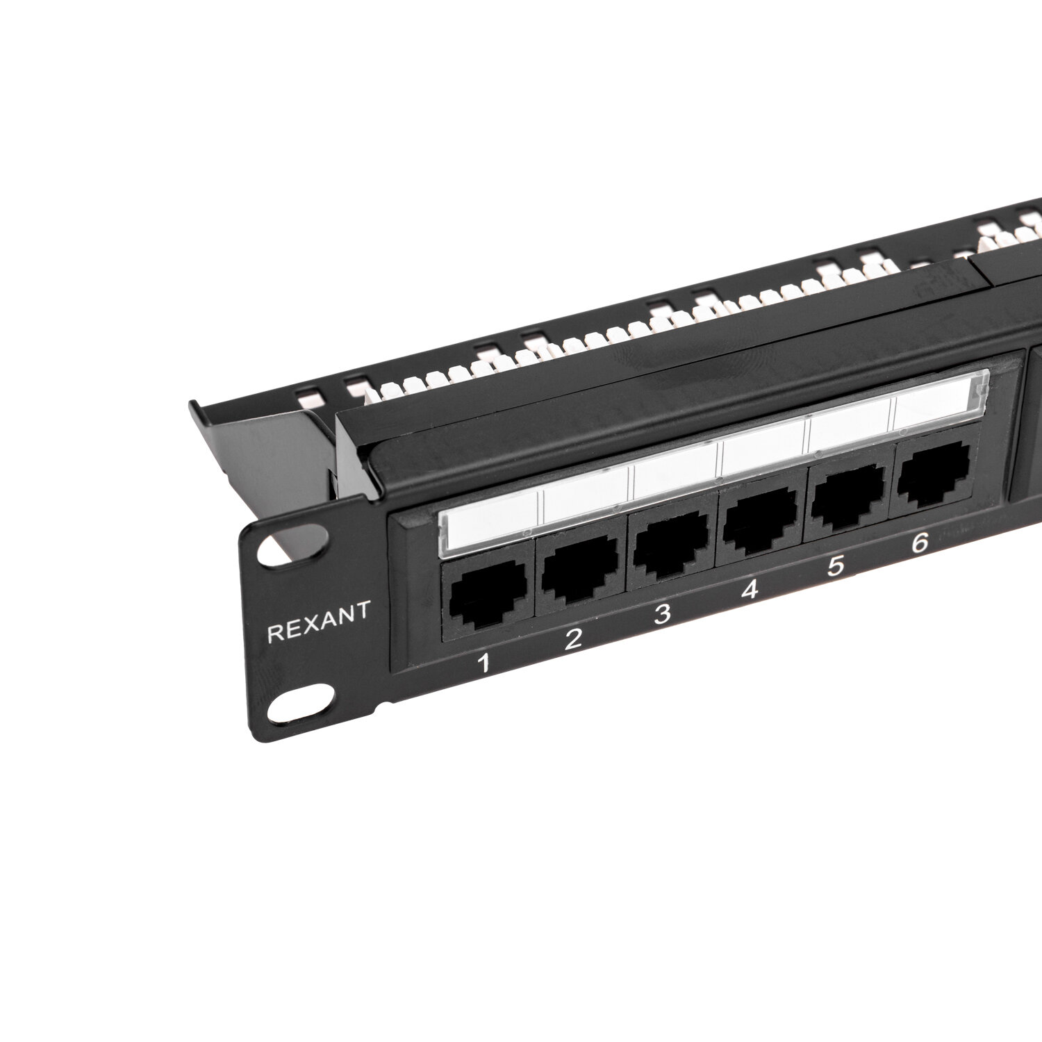 Патч-панель Rexant PRO с кабельным органайзером 19", 1U, 24 порта, UTP, RJ-45, CAT 5e