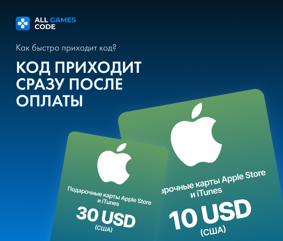 Подарочная карта Apple и пополнение Appstore / Код активации iTunes / Номинал 10 USD