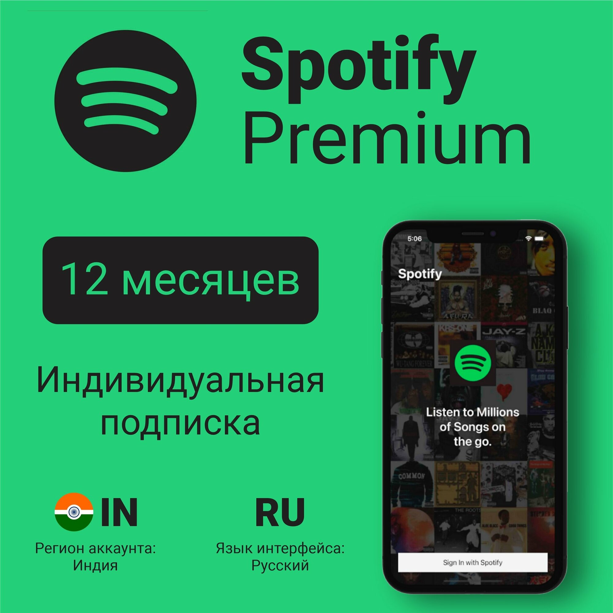 Купить Индивидуальная подписка Spotify Premium Индия 12 месяцев (1 год) / Продление подписки, подарочная карта, цифровой код