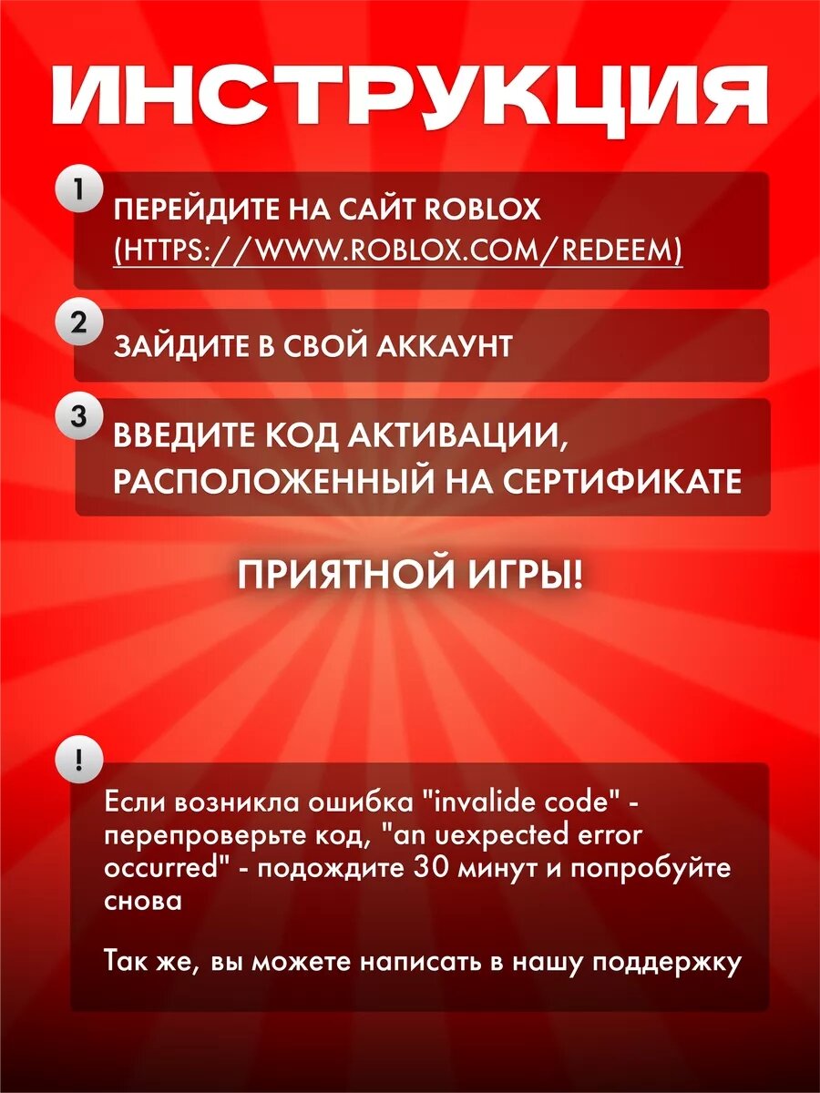 Ниже Вы можете прочитать отзывы на Подарочная карта для пополнения счета игровой валютой в Роблокс на 400 Robux, робукс, ознакомится с подробными характеристиками, посмотреть интересные обзоры и фотографии на Подарочная карта для пополнения счета игровой валютой в Роблокс на 400 Robux, робукс.