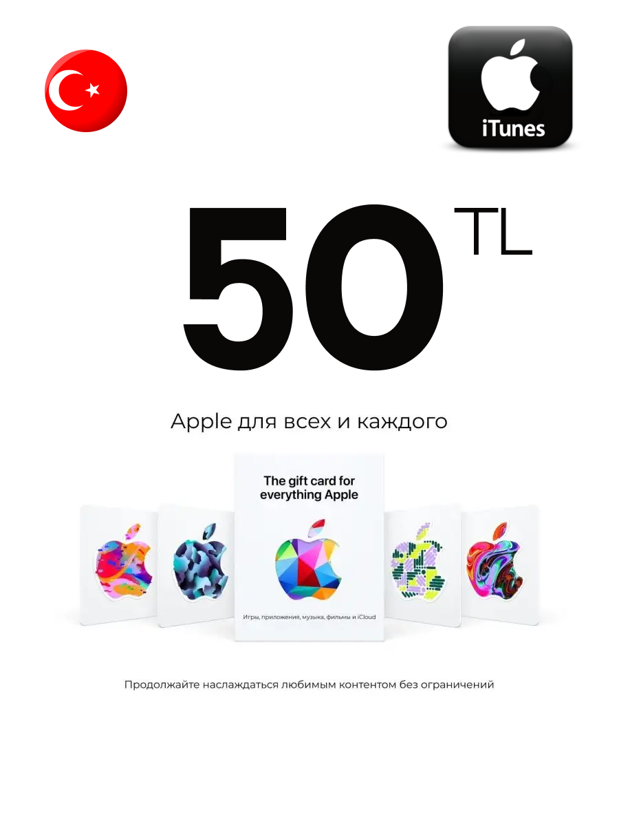 Купить Подарочная карта Apple iTunes 50 TL Турция / Пополнение счета, цифровой код