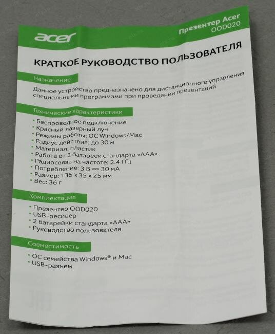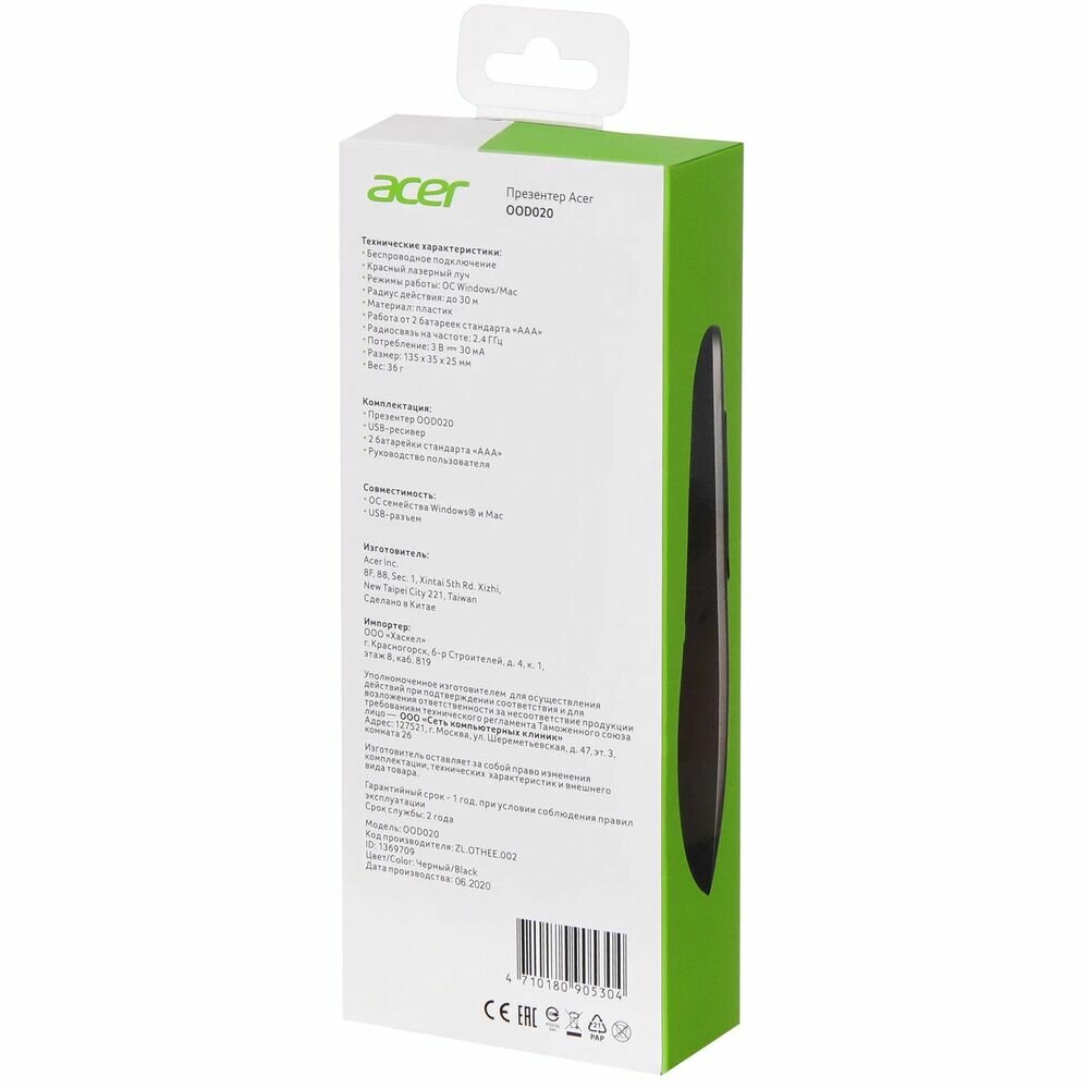 | Комплектация | Презентер Acer OOD020 Radio USB (30м) черный (ZL.OTHEE.002) |