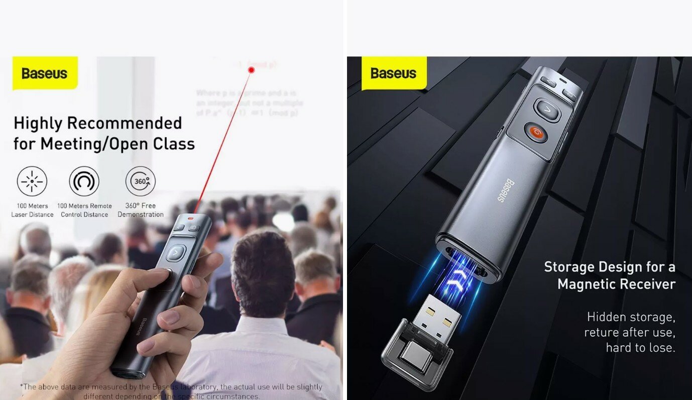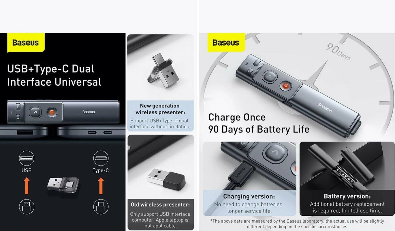 Лазерная указка Baseus Orange Dot Wireless Presenter Red Laser (WKCD000013) черная