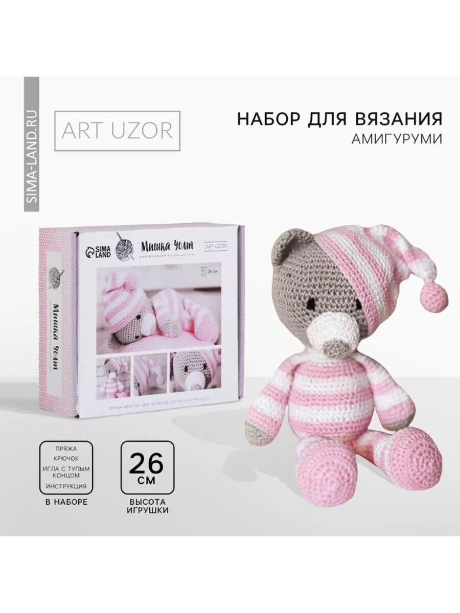 Амигуруми: Мягкая игрушка Сонный мишка Уолт, набор для вязания, 10 ? 4 ? 14 см Арт Узор 2724094 . интересное: