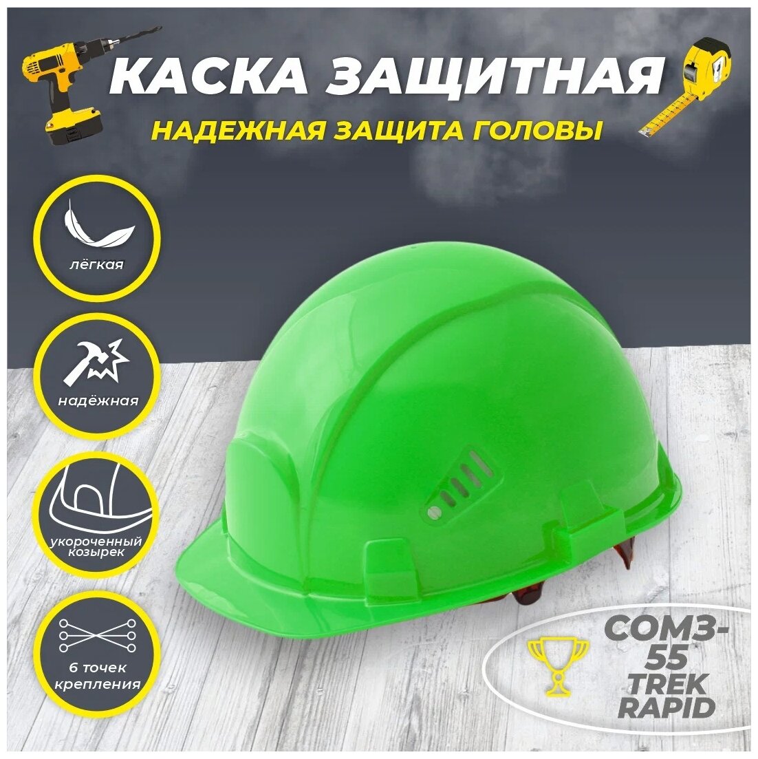 Каска РОСОМЗ СОМЗ-55 FavoriТ Trek RAPID зеленая, храповик