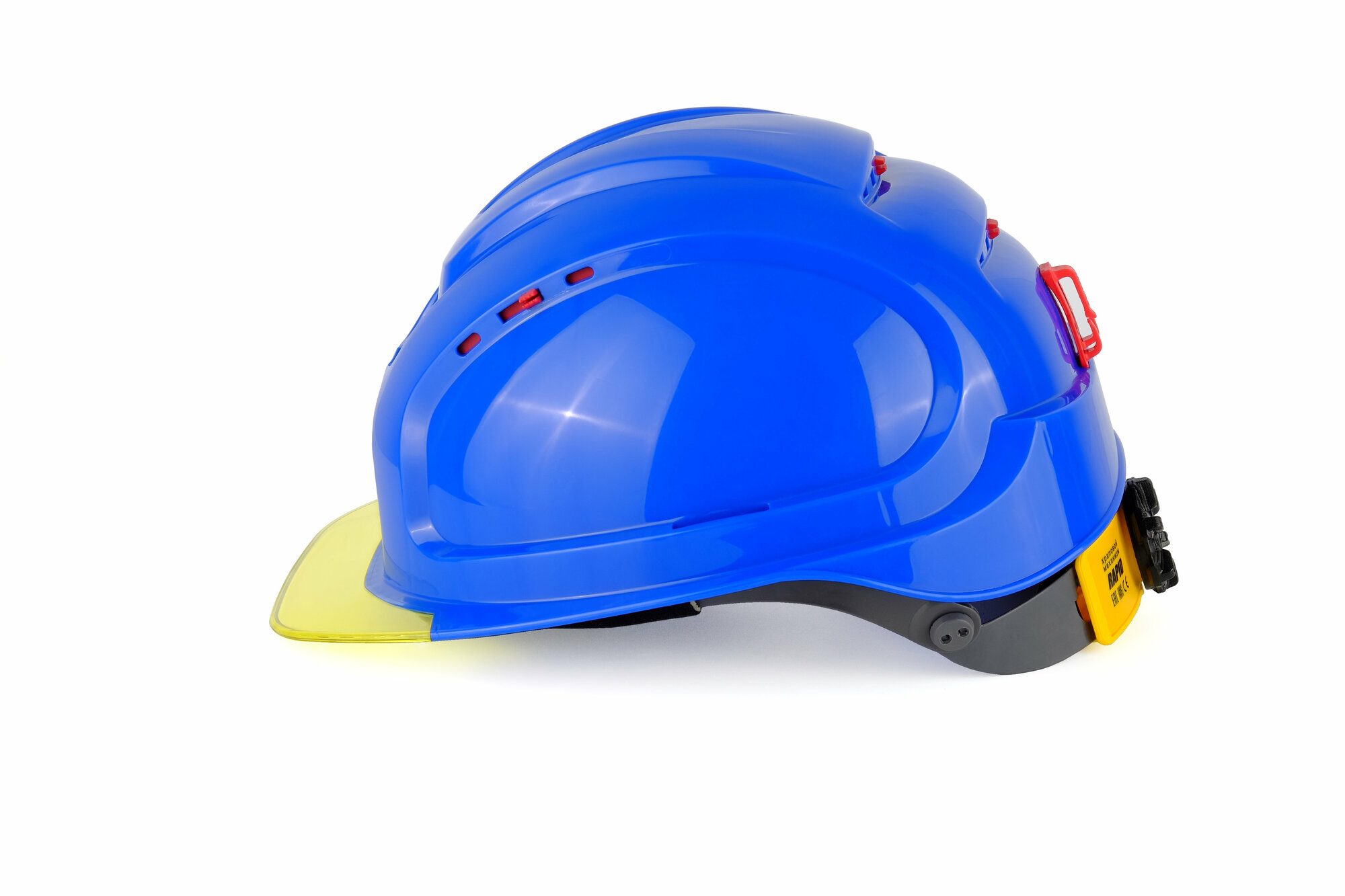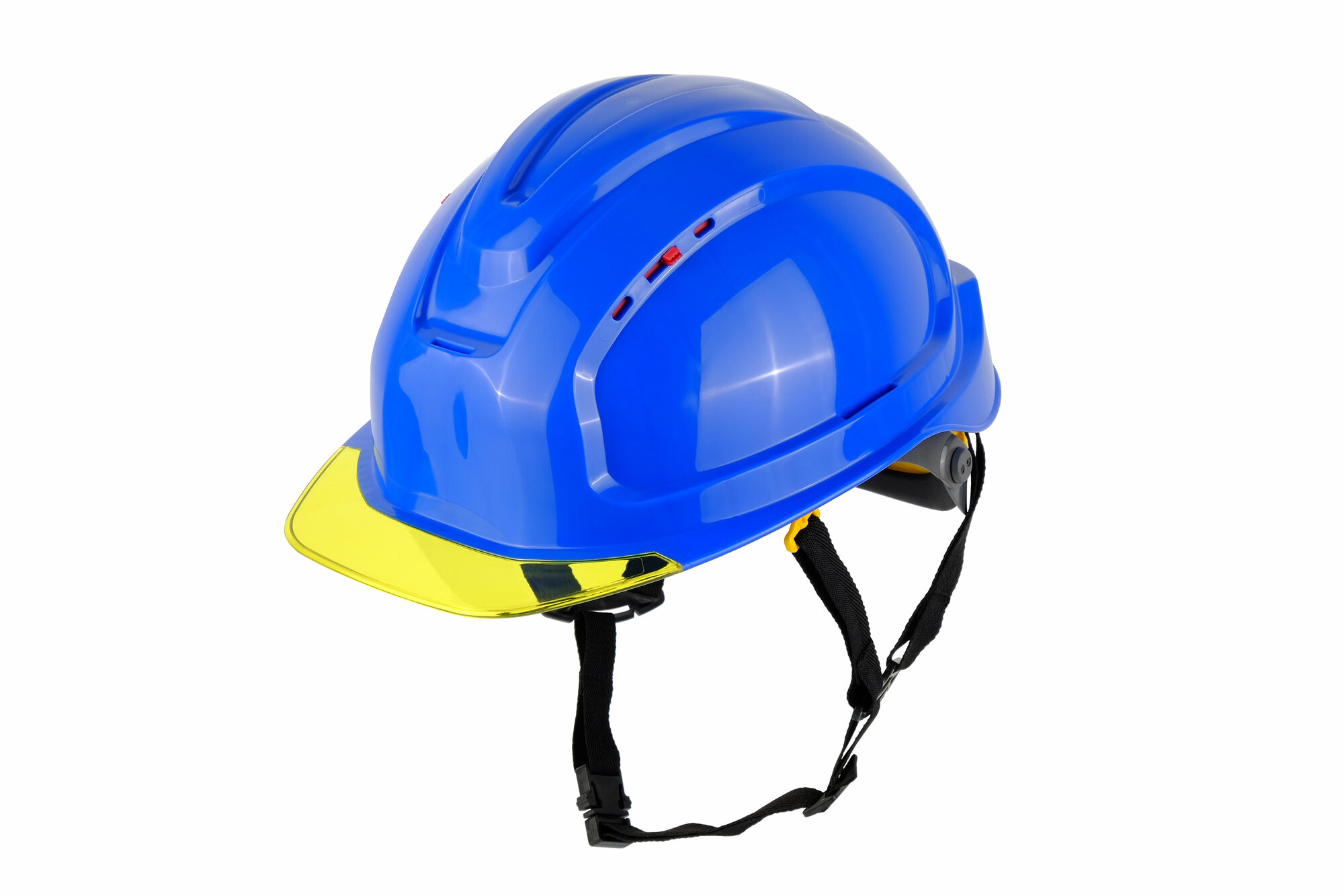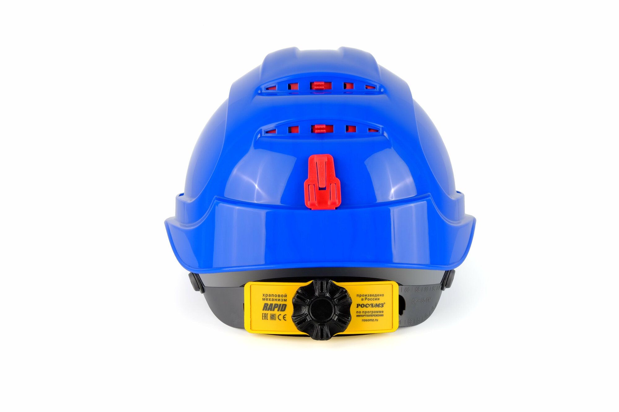 Купить Каска РОСОМЗ Абсолют Престиж Rapid синяя, желтый прозрачный козырек, инновационная